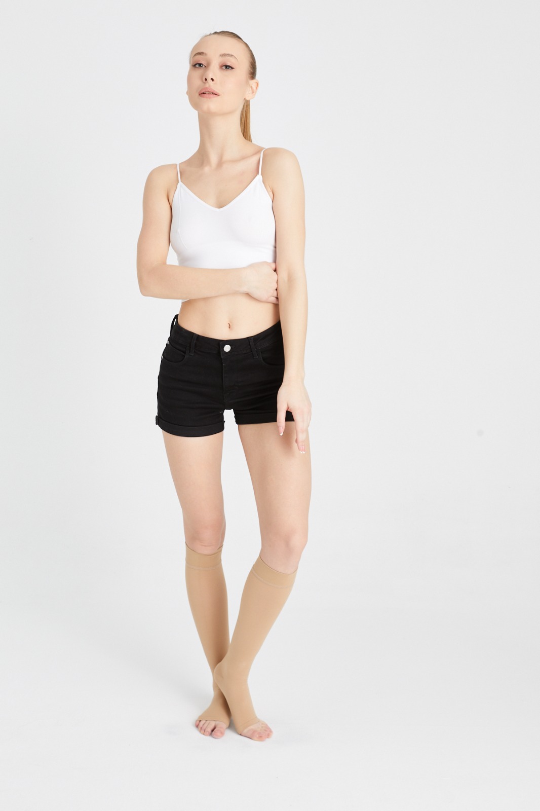 Nefes alabilen, cilt dostu ve elastik medikal kumaş yapısı; uzun süreli kullanımda konfor sunarken formunu koruyan dayanıklı örgü teknolojisi ile üretilmiştir. Günlük kullanım, uzun süre ayakta kalma, seyahat, gebelik dönemi ve ameliyat sonrası süreçlerde destek amacıyla tercih edilebilir.